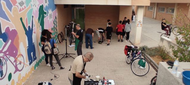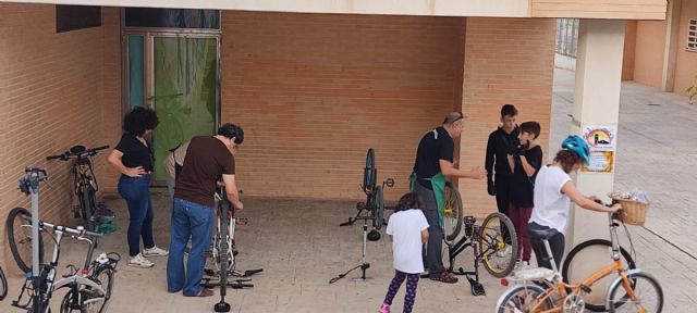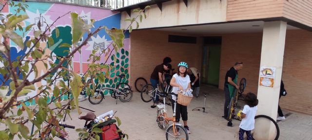 La actividad se realizó en colaboración con el colectivo Murcia en Bici, que aportó su sabiduría, experiencia y buen hacer en la reparación y mantenimiento de las bicicletas.