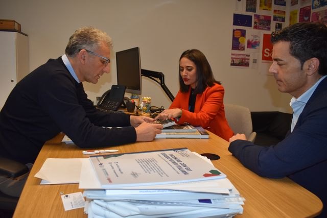 La candidata a la Alcaldía del Ayuntamiento de Totana, Isa Molino, se ha reunido con el coordinador de la Comisión de Cultura del Parlamento Europeo, Massimiliano Smeriglio, y el eurodiputado murciano, Marcos Ros Sempere.
