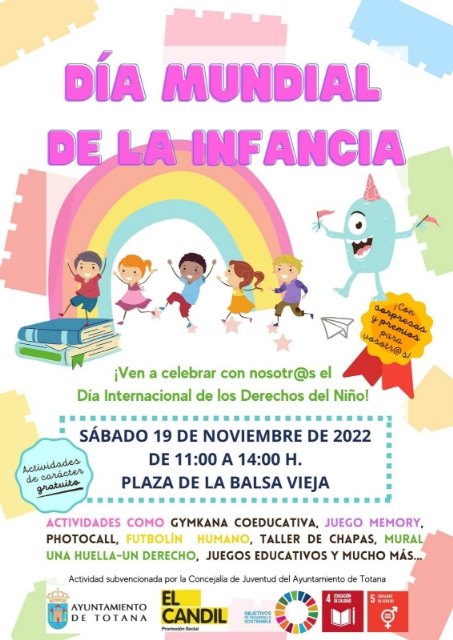 Los grupos políticos municipales Ganar Totana-IU, PP, PSOE, Grupo Mixto, y el concejal no adscrito Víctor Balsas, han elevado al pleno del próximo jueves, 24 de noviembre, una moción conjunta para aprobar una declaración institucional en favor del Día Universal de la Infancia.