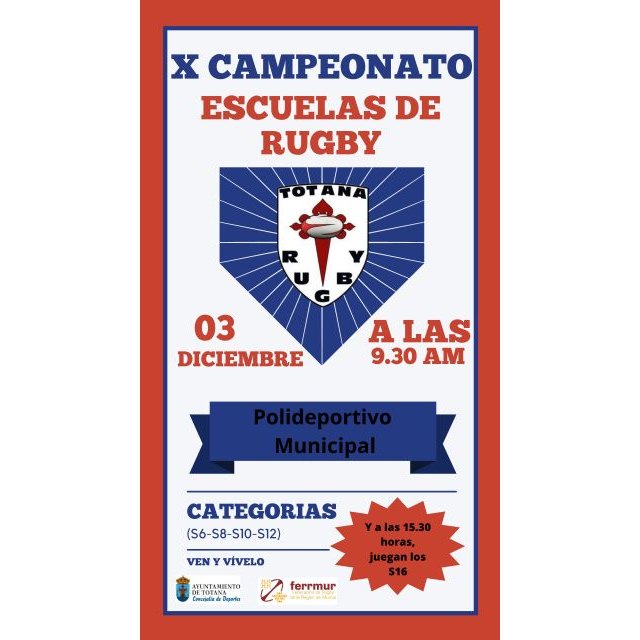 El Campeonato de Escuelas es la competición oficial donde se curtirán los futuros jugadores sénior de los clubs y esta temporada constará de diez competiciones, siendo en Totana la segunda. Nos daremos cita en el Polideportivo "6 de Diciembre" de Totana el sábado 3 de Diciembre de 2022 donde los jugadores y jugadoras estarán preparados para empezar a competir a las 9.30 horas esperando terminar sobre las 12.30 horas.