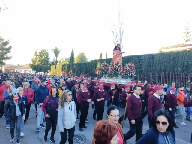 La Patrona de Totana ha regresado hoy a su ermita después de haber permanecido desde el pasado día 8 de diciembre en la ciudad con motivo de las fiestas patronales y de Navidad, coincidiendo con la jornada de festividad local; y tras dos años sin celebrarse en romería.