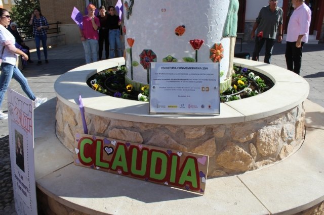 La Concejalía de Igualdad del Ayuntamiento de Totana promovió el pasado mes de noviembre, coincidiendo con los actos del Día Internacional de la Eliminación de la Violencia contra las Mujeres (25-N), en la Plaza del Santo Cristo la construcción de un monumento y la confección de un mural que rindieran homenaje a Claudia Abigail Siguencia, la joven totanera víctima del atentado machista, así como al resto de mujeres víctimas de violencia de género.
