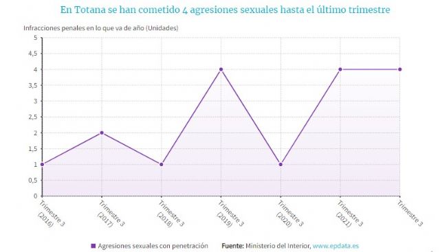 El resto de infracciones penales también ha subido un 17,9%. El incremento porcentual respecto al mismo periodo del año anterior nos revela un empeoramiento que alcanza el 14,7%. En el caso de agresiones sexuales con penetración, se han registrado un total de 4 denuncias, lo que evidencia que la situación no mejora respecto al año anterior.