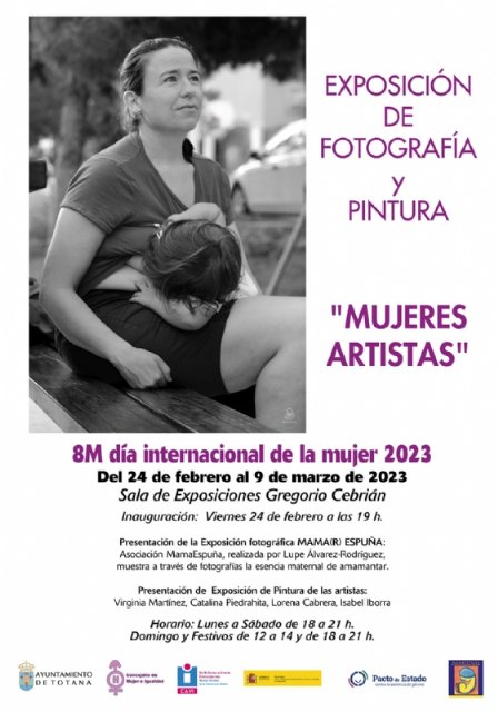 La Concejalía de Igualdad y Mujer comienza el programa de actividades programadas con motivo del Día Internacional de las Mujeres, el 8-M, con la exposición de fotografías y pintura “Mujeres artistas”, que se inaugura este viernes 24 de febrero, a partir de las 19:00 horas.