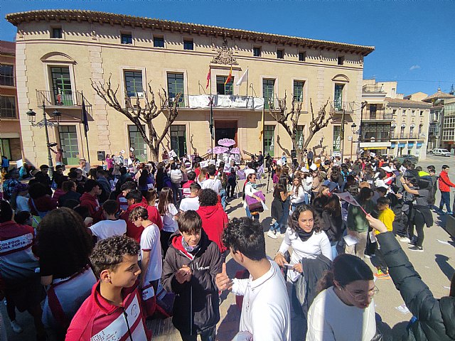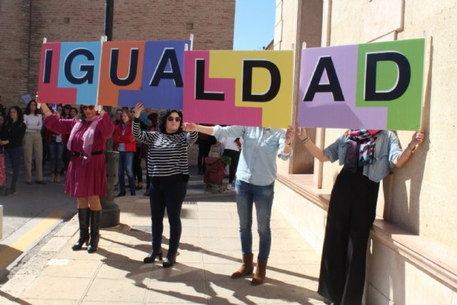 Totana celebró, en la plaza de la Constitución, el acto institucional conmemorativo coincidiendo con el Día Internacional de la Mujer, hoy 8 de marzo, que ha contado con la participación de distintos agentes, colectivos y asociaciones que operan en este ámbito de concienciación y sensibilización social por la igualdad de género entre hombres y mujeres.