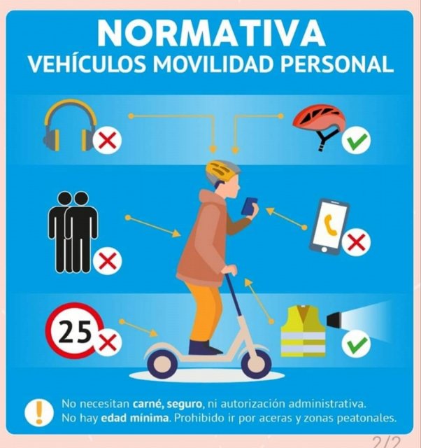 La Policía Local de Totana ha editado hace unas semanas una guía de utilización de vehículos de movilidad personal, que incluye regulación legal, sanciones y características técnicas.