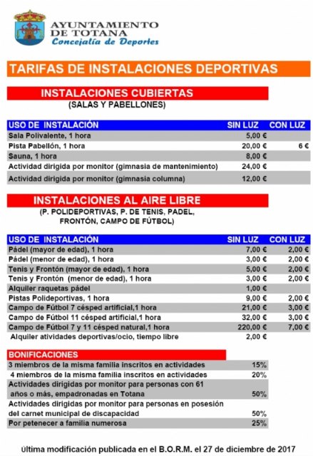 La Concejalía de Deportes comunica que, una vez finalizada la época de verano, los alquileres de pistas del  Polideportivo Municipal "6 de Diciembre", y del  Complejo  Deportivo "Valle Guadalentín" se retoman nuevamente desde la propia Concejalía.