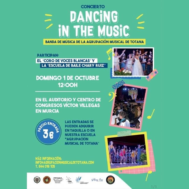El concierto “Dancing in the music” contará también con la participación del Coro de Voces Blancas  y la Escuela de Baile Chary Ruiz de Totana; y las entradas tienen un precio único de tres euros.