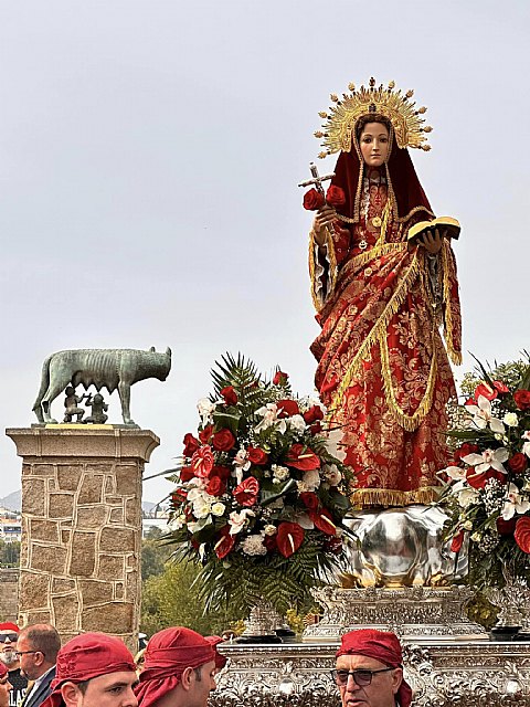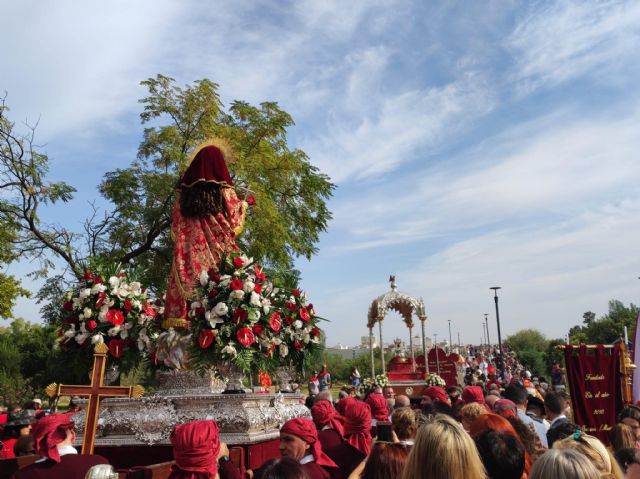 Un fin del camino muy especial ya que, a los peregrinos que han realizado el trayecto a pie se ha unido la imagen de Santa Eulalia de Mérida, Patrona de Totana, que hacía su salida desde la Parroquia de los Milagros, en Nueva Ciudad, sobre las 10 de la mañana.