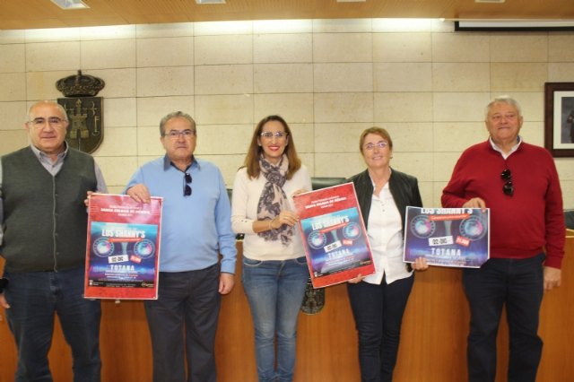 Tres de los componentes de Los Shanny´s, Miguel, Andrés y José, acompañados por la vicepresidenta de D´Genes Carmen Moreno y la concejal de Cultura y Festejos, Maribel Rubio, han presentado este concierto, que se enmarca en el programa de actos festivos en honor a la patrona de Totana, Santa Eulalia de Mérida.