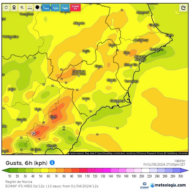 El día se presenta poco nuboso o despejado gracias al fuerte viento del noroeste que soplará en la Región de Murcia, especialmente durante la primera mitad del día. Las temperaturas serán parecidas a las del viernes o ligeramente más baja la mínima. Debido al viento, la sensación será de fresco.