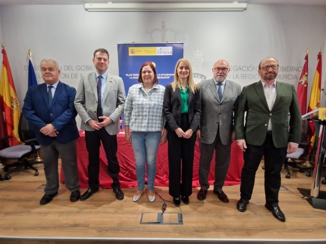 El acto ha tenido lugar en la sede de la Delegación del Gobierno en Murcia, con la presencia de la secretaria de Estado de Agricultura y Alimentación, Begoña García Bernal, la delegada del Gobierno, Mariola Guevara, y el presidente de la Comunidad de Regantes de Totana, Felipe Andreo, entre otros directivos de la entidad comunera, diputados y concejales totaneros.