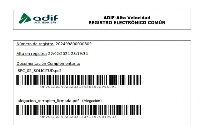 El pasado día 22 de febrero, coincidiendo con el final del periodo de alegaciones a la modificación número 1 del Proyecto modificado n°1 de construcción de plataforma del Corredor Mediterráneo de Alta Velocidad Murcia-Almería. Tramo: Totana-Totana, el Grupo Municipal Socialista, presentó una alegación al proyecto en su redacción actual.