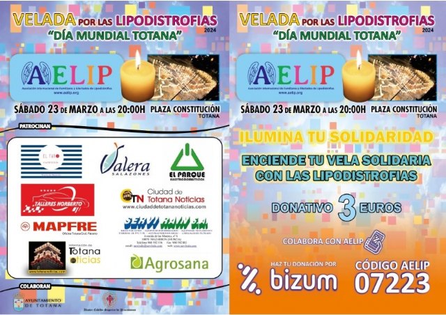 Como en ediciones anteriores, cientos de velas se unirán hasta formar las siglas de AELIP, con velas solidarias que la Asociación de Familiares y Afectados de Lipodistrofias pondrá a disposición de todos los participantes que quieran colaborar con un donativo de 3 euros cada una; una manera simbólica de mostrar el apoyo y la solidaridad a las personas que conviven con esta patología. Y de contribuir con la investigación de estas enfermedades ultra raras.