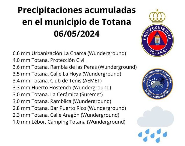 Precipitaciones acumuladas en Totana de ayer por la tarde