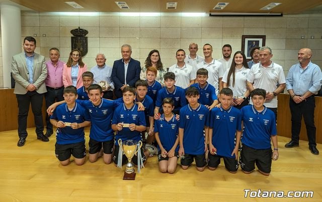 El Ayuntamiento de Totana realizó hoy, en el salón de plenos, una recepción institucional al equipo infantil del Club Fútbol Sala Capuchinos tras proclamarse campeón de Liga esta temporada 2024/25.