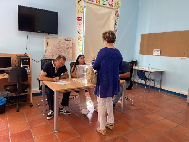 Totana celebró hoy la jornada electoral al Parlamento Europeo con total normalidad y una participación del 41,70% (9.447 votantes), lo que supone un descenso respecto a la convocatoria similar del año 2019 del -17,37% (12.032 electores).