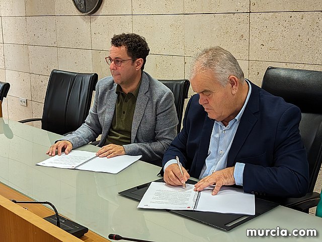 El director general del Instituto de las Industrias Culturales y las Artes (ICA), Manuel Cebrián, y el acalde de Totana, Juan Pagán, firmaron hoy el convenio de adhesión del municipio a la Film Commission Región de Murcia, cuyo objetivo es ofertar la singularidad patrimonial y paisajística del municipio para acoger rodajes.