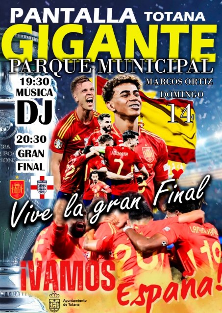La final de la Eurocopa 2024, que medirá este domingo por la noche a las selecciones nacionales de España e Inglaterra, se podrá ver en pantalla gigante en Totana.