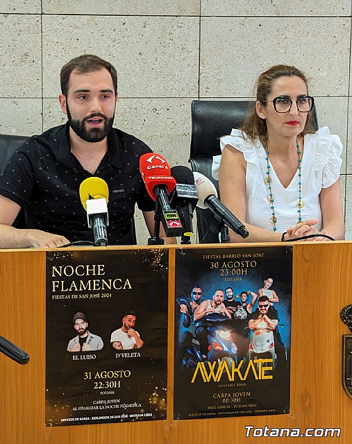 La concejal de Festejos, Maribel Rubio, y el secretario de la Asociación de Vecinos de San José y representante de la Comisión de Festejos, Sergio García, han presentado el programa de actividades que arranca este viernes con el chupinazo y la apertura de la barra (21:00 horas).