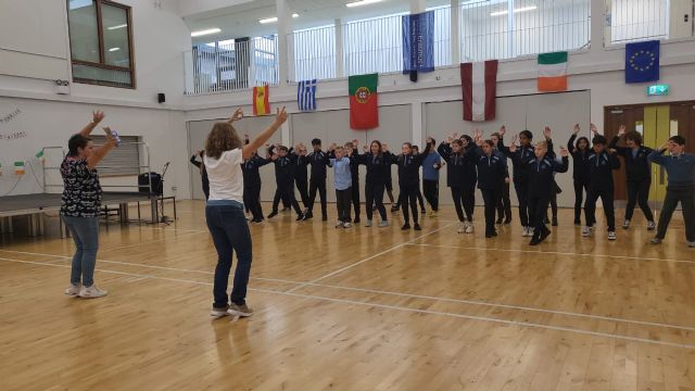 Para ello, hemos bailado en el colegio Saint Paul de Limerick, con su alumnado y profesorado, unos pasos básicos de la jota , a la vez que nos acompañaba la Televisión Nacional Irlandesa para dar a conocer y difundir nuestro proyecto , en el que se implica desde nuestro centro todo el profesorado , con la ilusión de sumergir a los niñ@s en la música y bailes tradicionales de otros países europeos.
