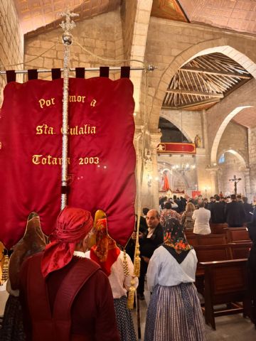 Al finalizar el recorrido dentro de la Basílica una vez terminado el oficio la Asociación de La Virgen y Mártir Santa Eulalia de Mérida comunica la decisión de la Institución de convertir el donativo realizado por el Patronato de La Santa en una alhaja de oro con el escudo de la ciudad de Totana que, lucirá la imagen emeritense en las distintas funciones solemnes. Una joya realizada en un taller de joyería de Totana. Una prueba de fraternidad y amistad que, durante muchos años procesa la ciudad hermana de Mérida a la ciudad de Totana que viene a reconocer el trabajo realizado por muchas generaciones de totaneros y emeritenses en la divulgación y conocimiento de la figura de Eulalia de Mérida.