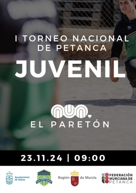 El Club Petanca El Paretón celebra este sábado 23 de noviembre el I Torneo Nacional Juvenil de esta disciplina, en el que participarán más de medio centenar de deportistas de la Región de Murcia y otras federaciones autonómicas españolas; un evento deportivo de referencia que cuenta con la colaboración de la Concejalía de Deportes de Totana y la Federación Murciana de Petanca.