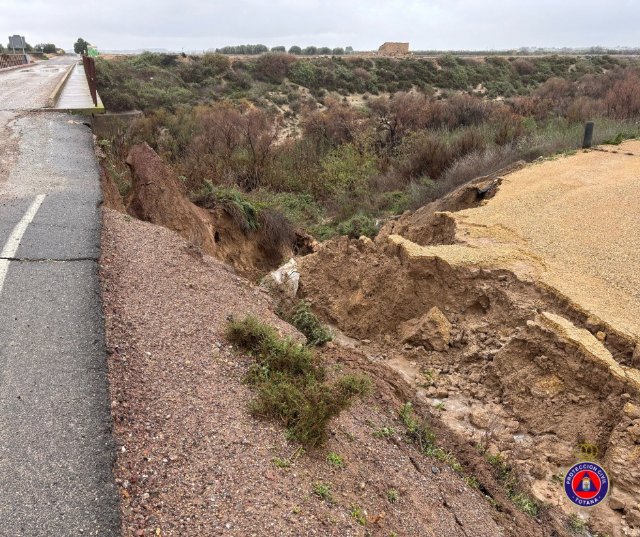 Corte de carreteras y caminos afectados por la rambla de Lébor, río Guadalentín y zona de Raiguero.