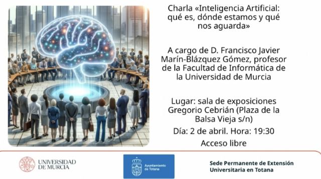 El miércoles 2 de abril, a partir de las 19:30 horas, se celebra la charla que lleva por título “Inteligencia Artificial: qué es, dónde estamos y qué nos aguarda”; la primera actividad de la nueva etapa de la Sede Permanente de Extensión Universitaria de Totana de la Universidad de Murcia, según informan fuentes de la Concejalía.