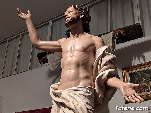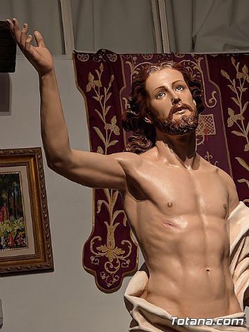 La Archicofradía de Nuestro Padre Jesús Nazareno de Alhama de Murcia presentó ayer con gran entusiasmo la nueva imagen de Jesús Resucitado, una majestuosa obra del joven escultor totanero Alberto Marín López. Esta escultura procesionará por primera vez el próximo Domingo de Resurrección y sustituye a la anterior realizada en los talleres de Olot.