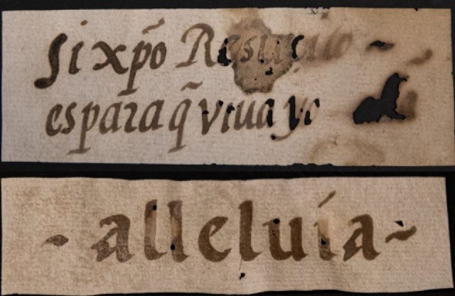 Acordes con esta perspectiva recordamos enunciados que reflejan este sentir. El primero de ellos se constituía a finales del siglo XVI. Se trata de una pequeña jaculatoria que reconoce la confianza en la capacidad redentora de Jesús de Nazaret. "Si Cristo resucitó es para que viva yo". Un elocuente texto escrito sobre papel y depositado en el periodo señalado entre las vigas del artesonado mudéjar del templo de Santiago. Asimismo, se colocaron otras cédulas con la expresión "Alleluia". Estas últimas formaban parte de un pliego mayor, del que se recortaban para, siguiendo la tradición, arrojarlas en los templos en la celebración del Sábado Santo, en la misa de Resurrección, en el momento en el que el sacerdote entonaba el aleluya, preludio del canto que, según san Agustín, vitorearán los salvados al encontrarse en el cielo con la gloria de Dios. De uno de estos impresos editaba la cofradía totanera de Jesús Resucitado y Nuestra Señora de la Alegría ejemplares para distribuir entre sus hermanos. El lector interesado puede consultar el desarrollo de esta aportación en la revista de Semana Santa de Totana del año 2023.