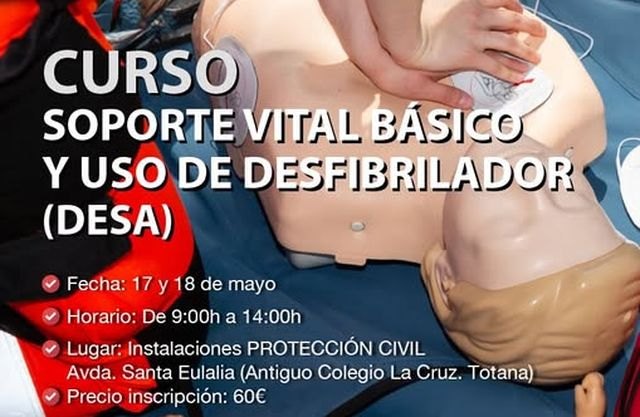 La formación tendrá lugar en las instalaciones de Protección Civil, ubicadas en la Avenida Santa Eulalia (Antiguo Colegio La Cruz, Totana), en horario de 9:00 a 14:00 horas. El precio de inscripción es de 60 euros.