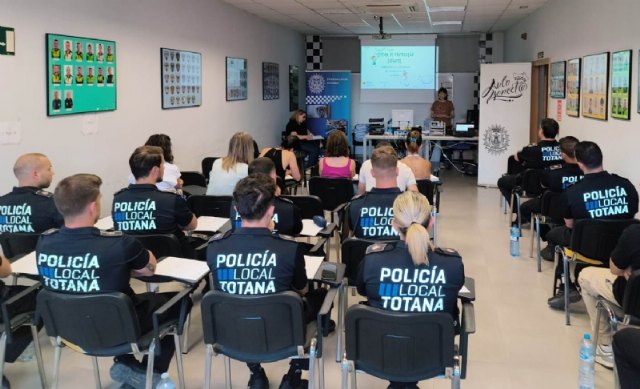 Agentes de la Policía Local de Totana se vienen formando en el protocolo de notificación de riesgo y maltrato infantil y adolescente, en el transcurso de una sesión formativa que se ha celebrado en las dependencias de la Jefatura de la Policía Local, a cargo de la Asesoría de Información y Estudios perteneciente a la Dirección General de Familias, Infancia y Conciliación de la Consejería de Política Social, Familias e Igualdad.