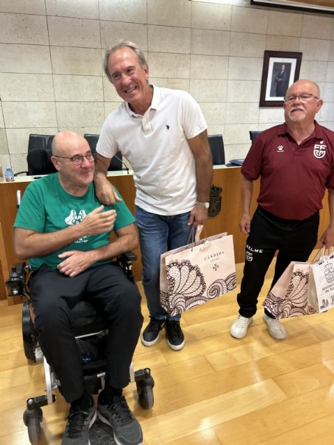 El Ayuntamiento de Totana realizó hoy una recepción institucional, en el salón de plenos, a las delegaciones de la Selección de Veteranos de la Federación de Fútbol de la Región de Murcia (FFRM) y la Asociación del Athletic de Bilbao, horas antes del partido benéfico que ambos combinados disputarán en el estadio municipal “Juan Cayuela” (18:00 horas), a beneficio de la Asociación ELA Región de Murcia.