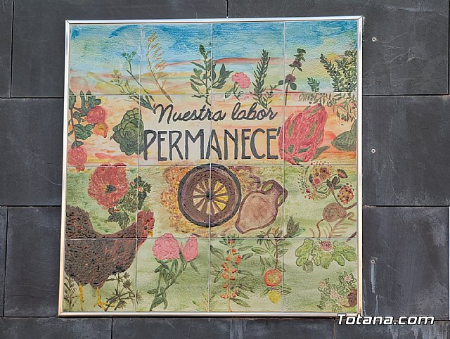 El mural representa, según explicó, el trabajo cotidiano en la vida rural: el campo, las plantas, los animales y la esencia que comparten las mujeres en su día a día. Cada pieza “tiene un poco de cada una”. Dio las gracias a la CARM, al Ayuntamiento de Totana y a la ciudadanía de Lébor por permitirles utilizar el local social, así como a todas las compañeras por su implicación.