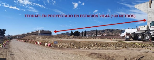 Mientras la plataforma esperaba, las obras del terraplén en Totana no solo no se han paralizado, sino que se han acelerado, construyendo el muro de hormigón que servirá de contención al terraplén restante. Este muro se extiende a lo largo del tramo urbano, afectando específicamente a 130 metros enfrente de la estación vieja y 170 metros hasta la estación nueva, justo a la entrada del casco urbano.