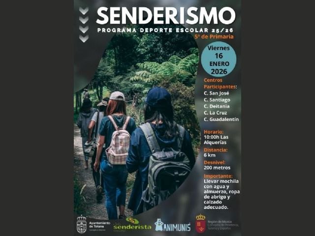 La Concejalía de Deportes y el Club Senderista organizan, en colaboración con los centros de Educación Primaria de Totana, dos salidas de senderismo dentro del Programa de Deporte Escolar 2025/2026.