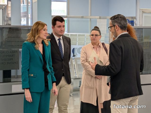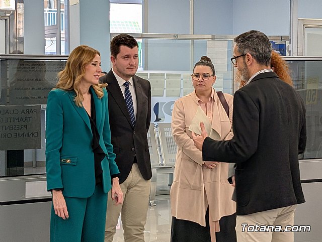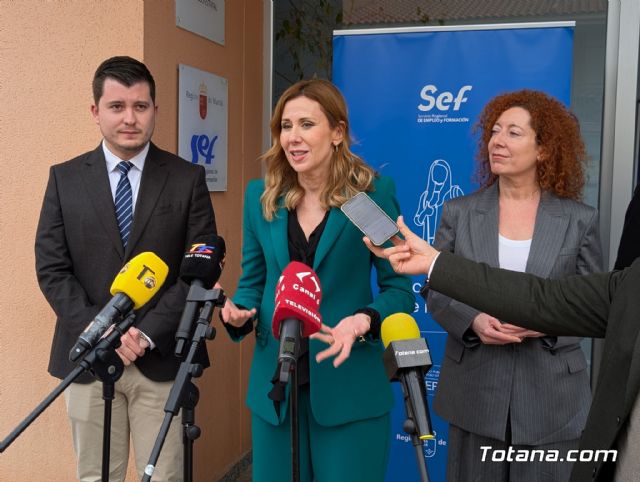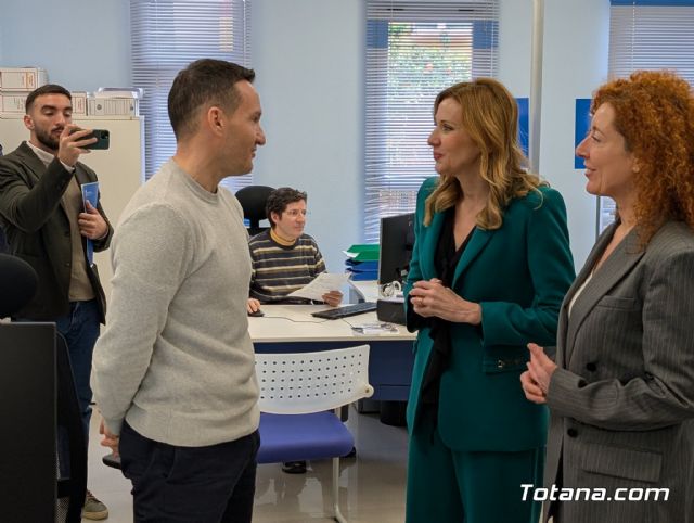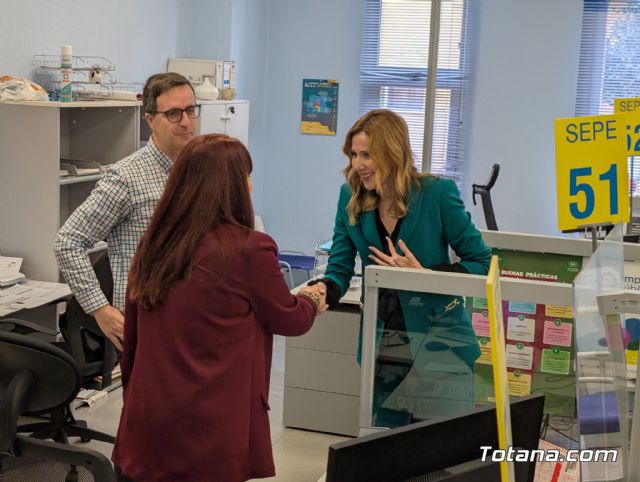 La consejera de Empresa, Empleo y Economía Social, Marisa López Aragón, visitó hoy la Oficina de Empleo de Totana para conocer el trabajo que realiza su personal técnico, al que definió como un servicio “esencial” por su labor de atención, orientación y acompañamiento a quienes buscan empleo o una mejora laboral.