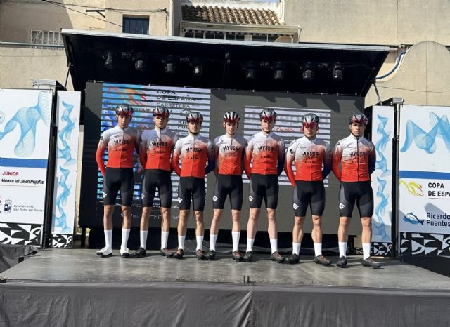 La Concejalía de Deportes felicita al ciclista totanero, Luis Cayuela, por su gran clasificación en el Memorial Juan Pujalte de Copa la de España Júnior, segunda prueba de un circuito nacional que ahora pasa a liderar el de Totana; tercero en meta ante su público en la prueba celebrada en San Pedro del Pinatar.