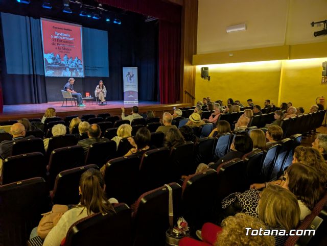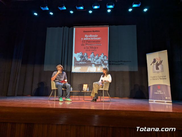 Esta tarde de sábado, 25 de abril, mientras buena parte de Totana celebraba el tradicional sanmarqueo, decenas de vecinos optaron por un plan distinto: asistir a la presentación de una obra que rescata una de las realidades más desconocidas y silenciadas de la historia reciente de España.. El Teatro Ginés Rosa del Centro Sociocultural La Cárcel acogió la presentación de Redimir y adoctrinar: el Patronato de Protección a la Mujer (1941–1985), de Carmen Guillén, historiadora de Mazarrón que lleva doce años desentrañando una institución que el franquismo levantó para encerrar mujeres y que la democracia tardó diez años en clausurar.