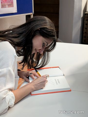 "Gracias, Carmen, por venir", dijo Aránega. "Y gracias también a Editorial Crítica y a nuestro amigo y librero de confianza Daniel Martínez Meca", de la Librería Faro, que vendió ejemplares a la salida para que la autora los firmara.